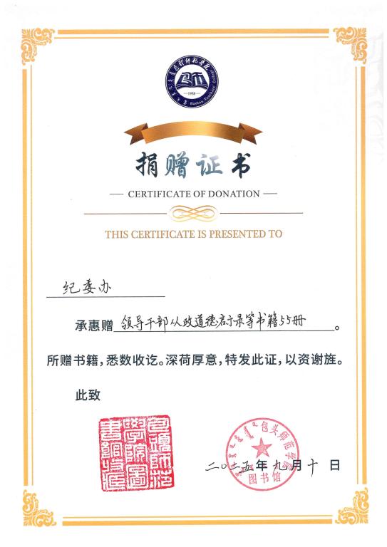 纪委办捐赠图书55册