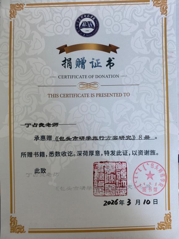 丁占良教授捐赠专著8册